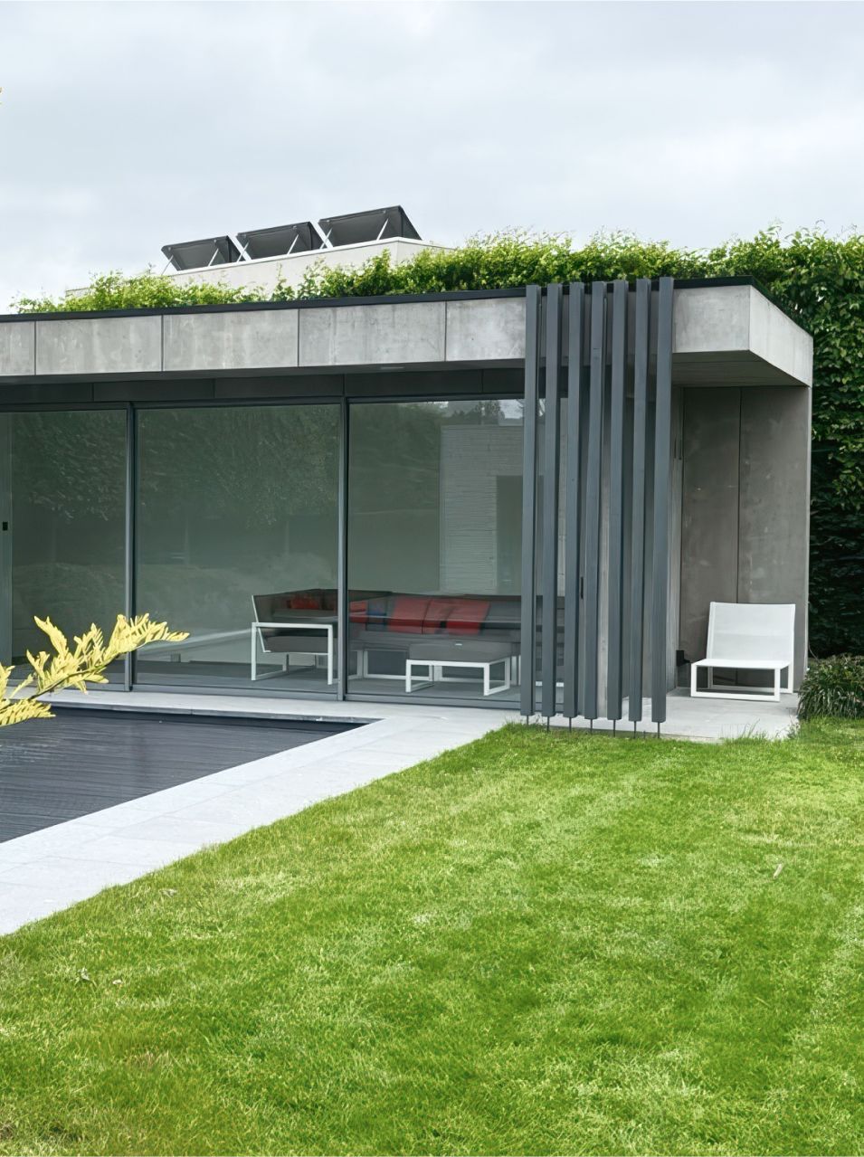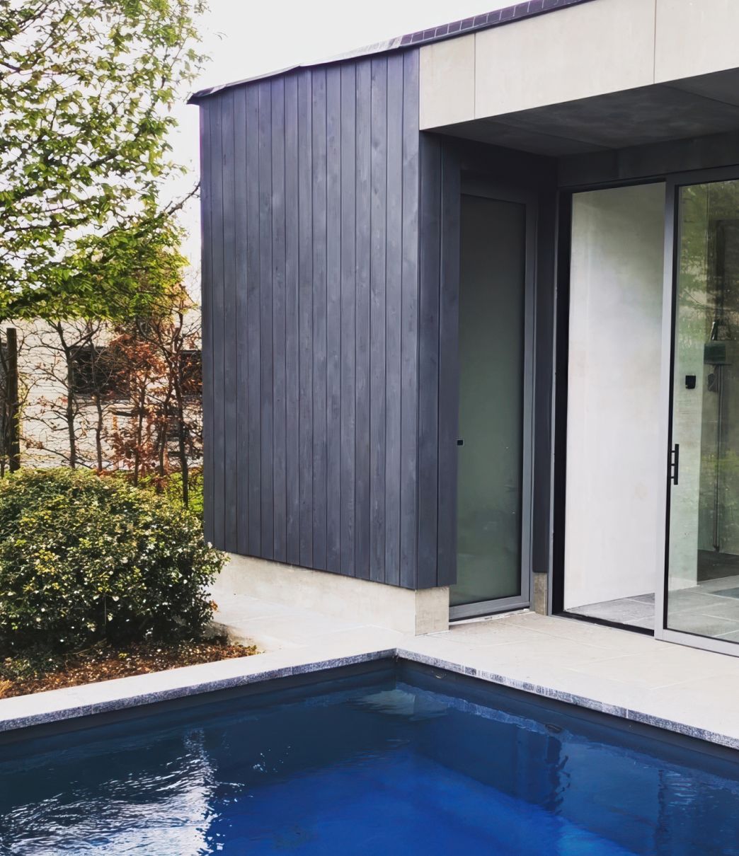 Ce charmant chalet au bord de la piscine à Bruges est entièrement habillé de mélèze. La construction dégage une chaleur naturelle et une élégance discrète. Les tons doux et le grain épuré du bois complètent parfaitement le paysage environnant, tandis que sa durabilité naturelle en fait un matériau idéal pour les applications extérieures. Cette pool house illustre parfaitement l’équilibre entre esthétique et durabilité du mélèze.