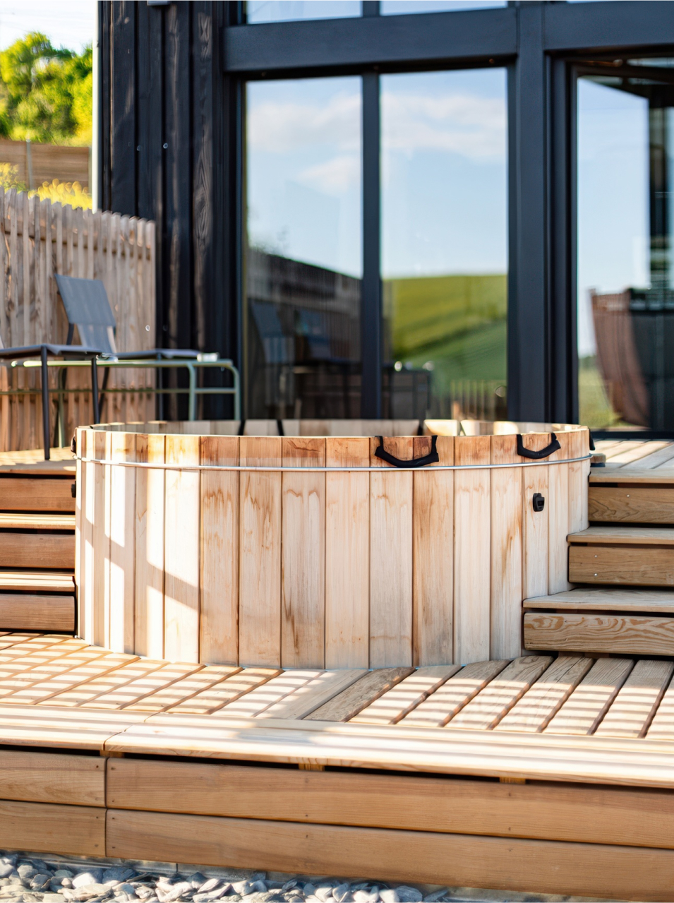 Lorsque nous avons rencontré Mathieu, il nous a partagé la vision qu’il avait avec sa femme Clémence pour un lieu unique en son genre : l’Ostara Ecolodge, un refuge luxueux et écoresponsable, en pleine immersion dans la nature. Passionnés de voyages, d’architecture, de durabilité et de design d’exception, ils avaient un rêve clair qui nous a immédiatement inspirés. Situé au cœur de forêts luxuriantes et de prairies ouvertes, Ostara est un sanctuaire de calme. Notre contribution : un bardage en Douglas black, enveloppant le bâtiment d’une peau audacieuse et élégante.