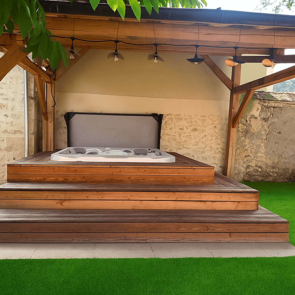 Pour ce projet, le client souhaitait créer un écrin charmant et intime, centré autour d’un jacuzzi, parfaitement intégré au paysage naturel. Nous avons donné vie à cette vision en réalisant un espace assis sur mesure ainsi que des marches en gradins qui entourent délicatement le jacuzzi, créant un lieu accueillant pour des moments de détente entre amis ou en famille.
